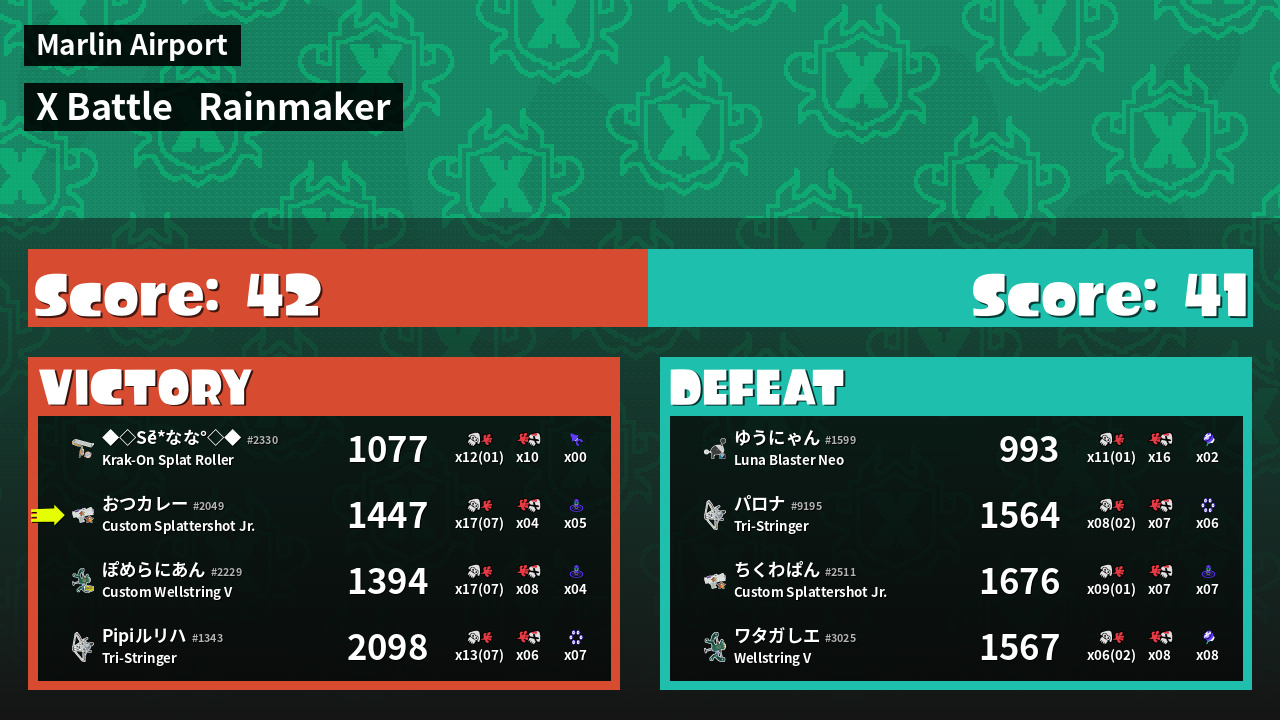 | Medals | #1 Overall Splatter #1 Splat Assister #1 Checkpoint Breaker |