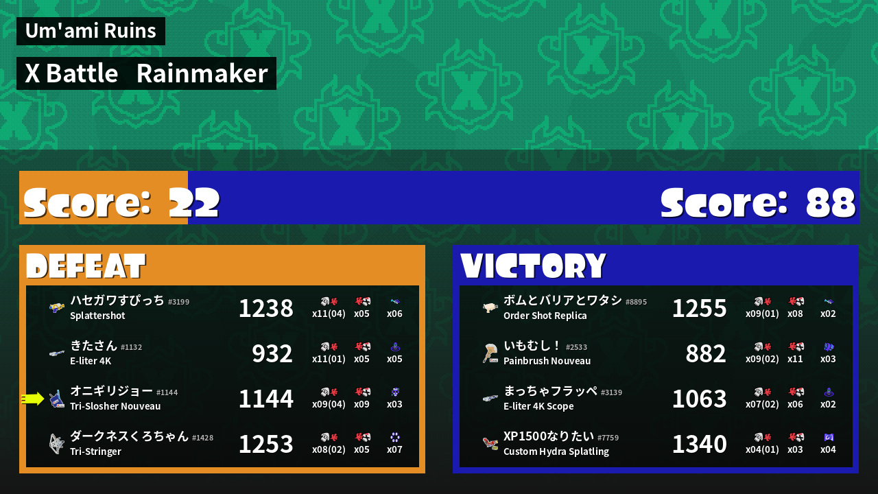 Results of まこりーた's Battle