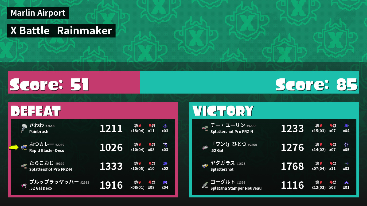 | Medals | #1 Super Jump Spot #1 Damage Taker #2 Overall Splatter |