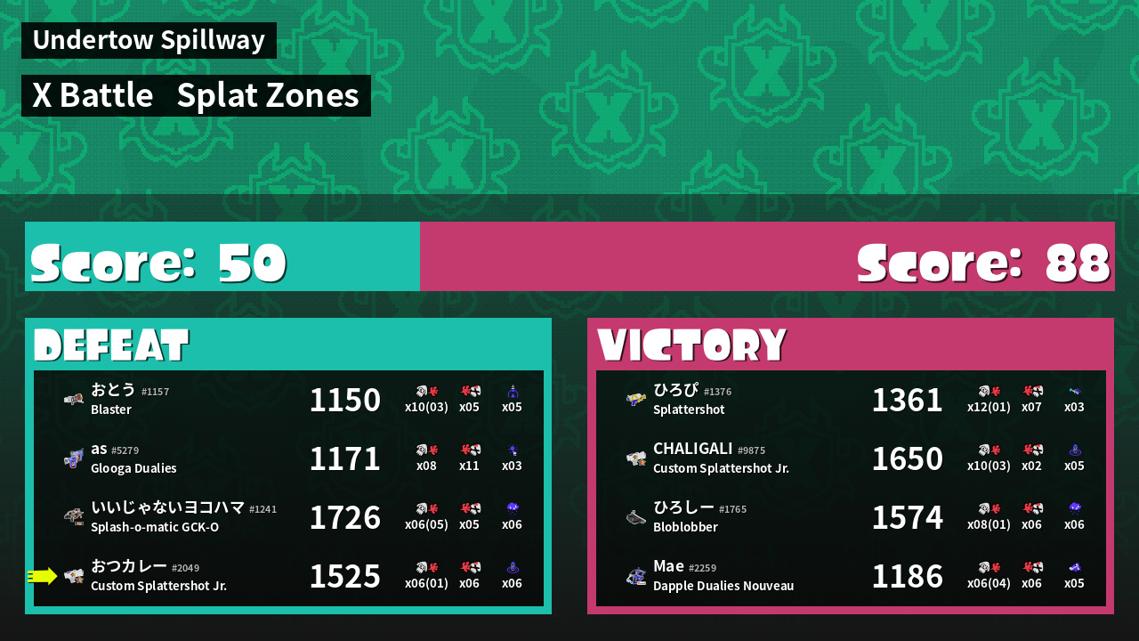 | Medals | #1 Splat Zone Guard #1 Super Jump Spot #1 Splat Zone Hero |