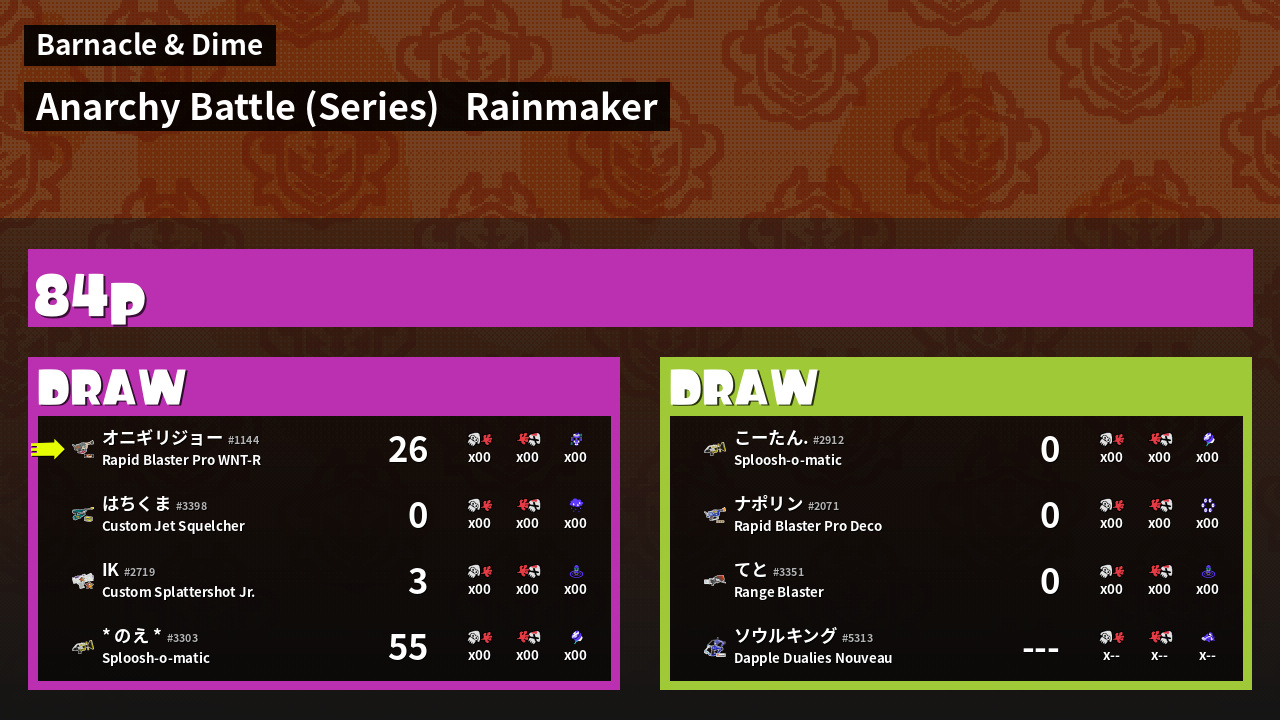| Mode | Rainmaker - Anarchy Battle (Series) |