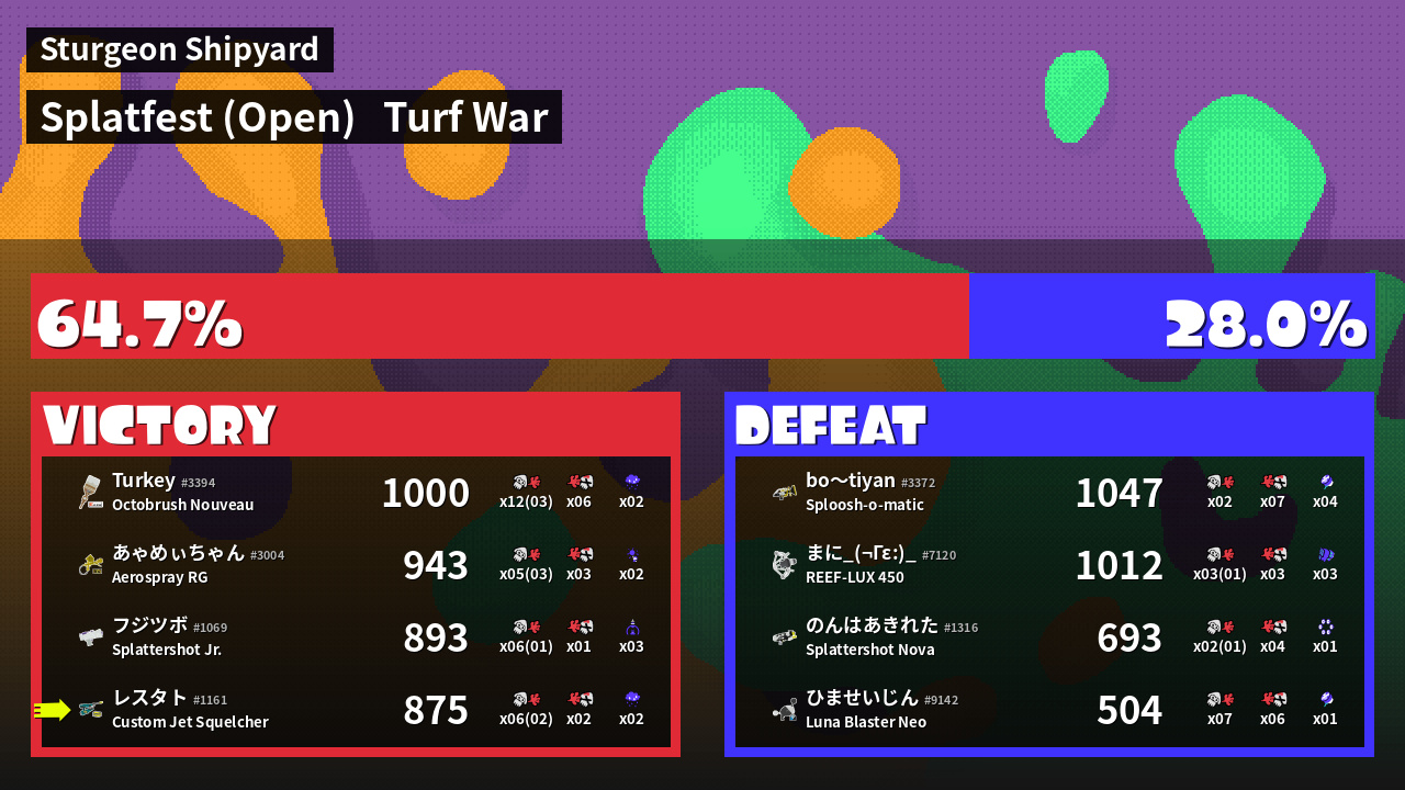 Results of まこりーた's Battle