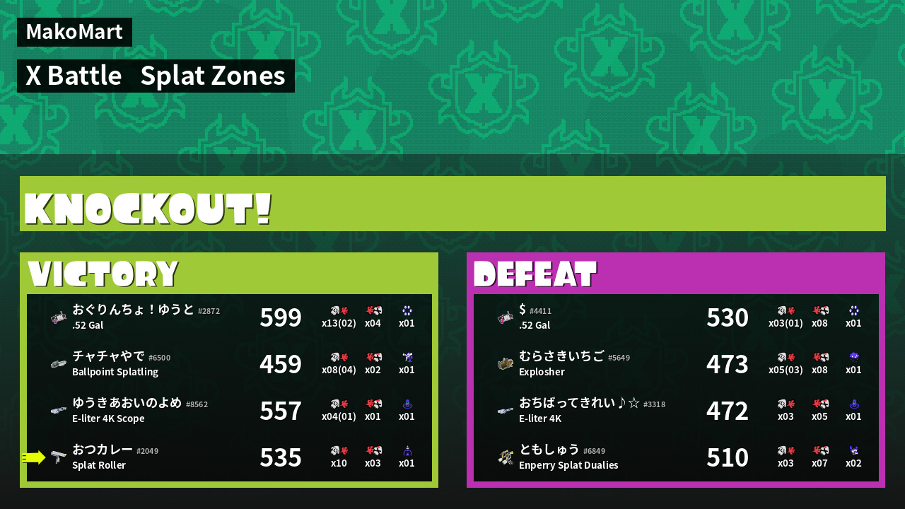 | Medals | #1 Ground Traveler #2 Overall Splatter #2 Enemy Splatter |