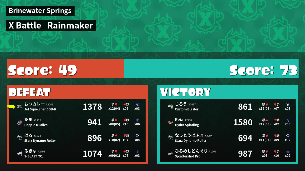 | Weapon | Jet Squelcher COB-R ( Burst Bomb / Triple Splashdown) |
