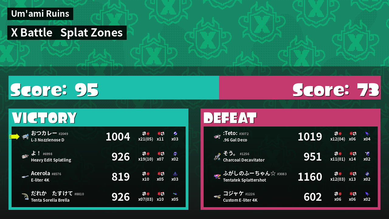 | Medals | #1 Overall Splatter #1 Splat Zone Guard #1 Turf Inker |