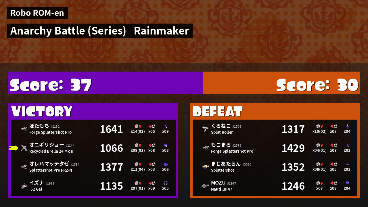 Results of まこりーた's Battle
