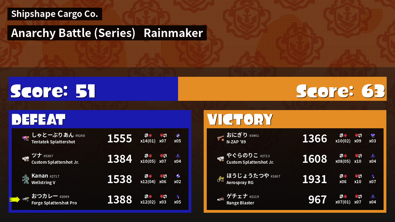 Results of まこりーた's Battle