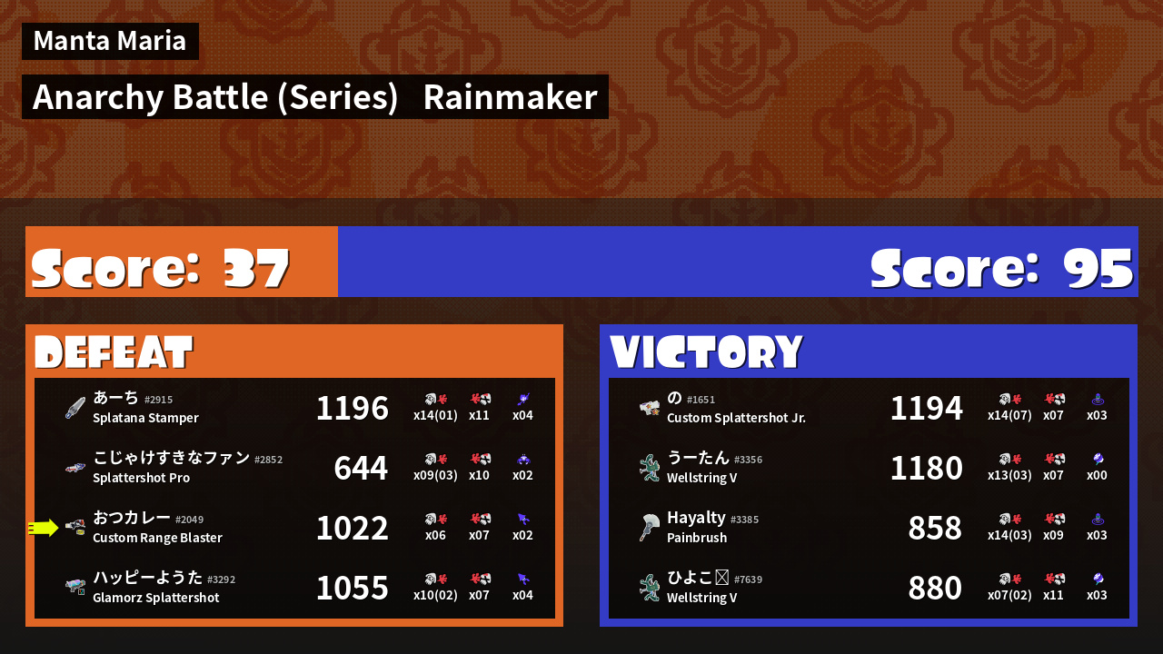 | Mode | Rainmaker - Anarchy Battle (Series) |