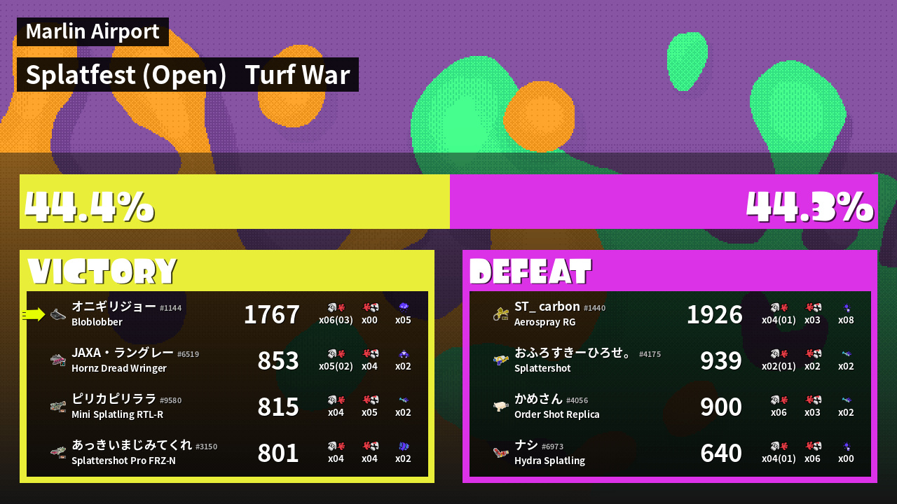 Results of まこりーた's Battle
