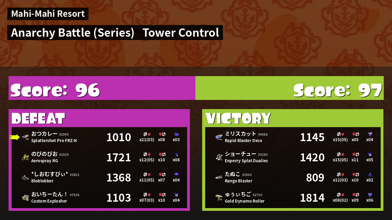 | Mode | Tower Control - Anarchy Battle (Series) |