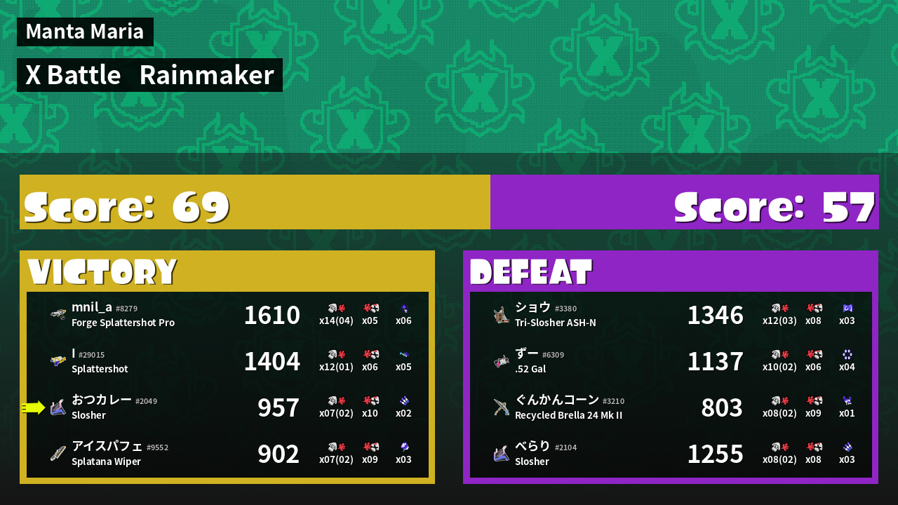 | Weapon | Slosher ( Splat Bomb / Triple Inkstrike) |