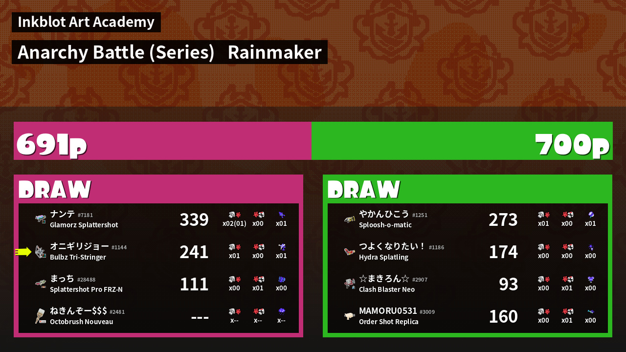 | Mode | Rainmaker - Anarchy Battle (Series) |