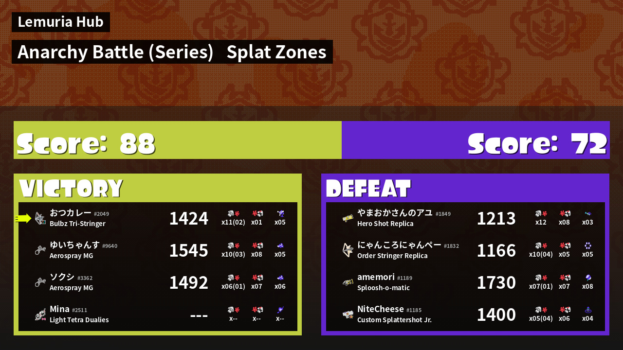 | Mode | Splat Zones - Anarchy Battle (Series) |