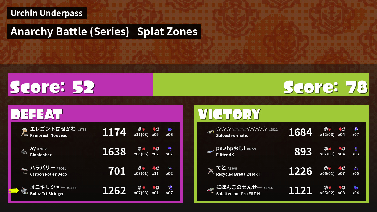 | Mode | Splat Zones - Anarchy Battle (Series) |