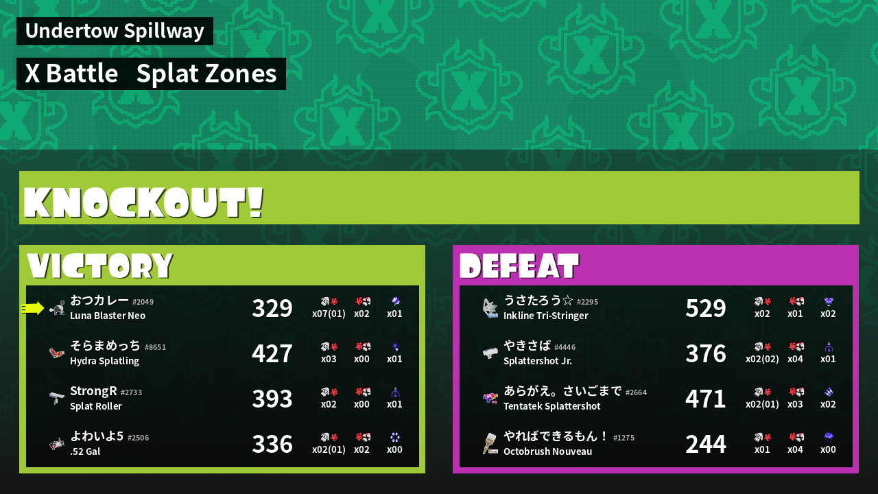 | Medals | #1 Overall Splatter #1 Splat Zone Guard #1 Enemy Splatter |