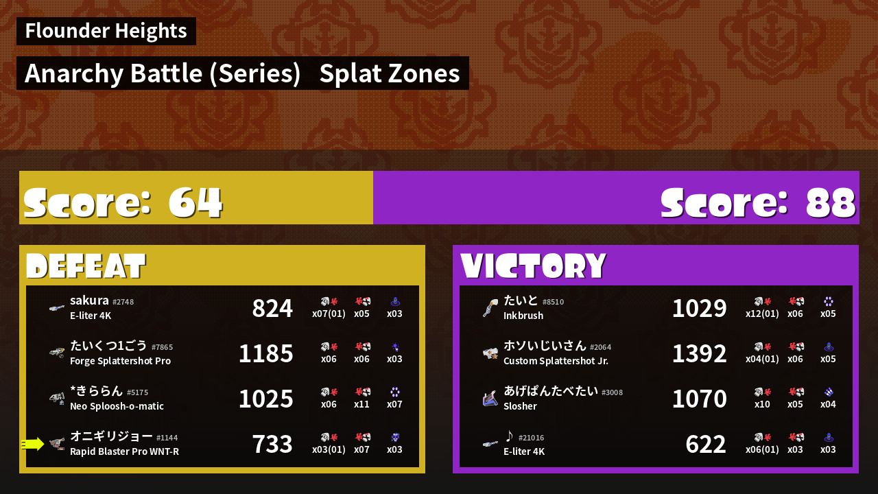 | Mode | Splat Zones - Anarchy Battle (Series) |