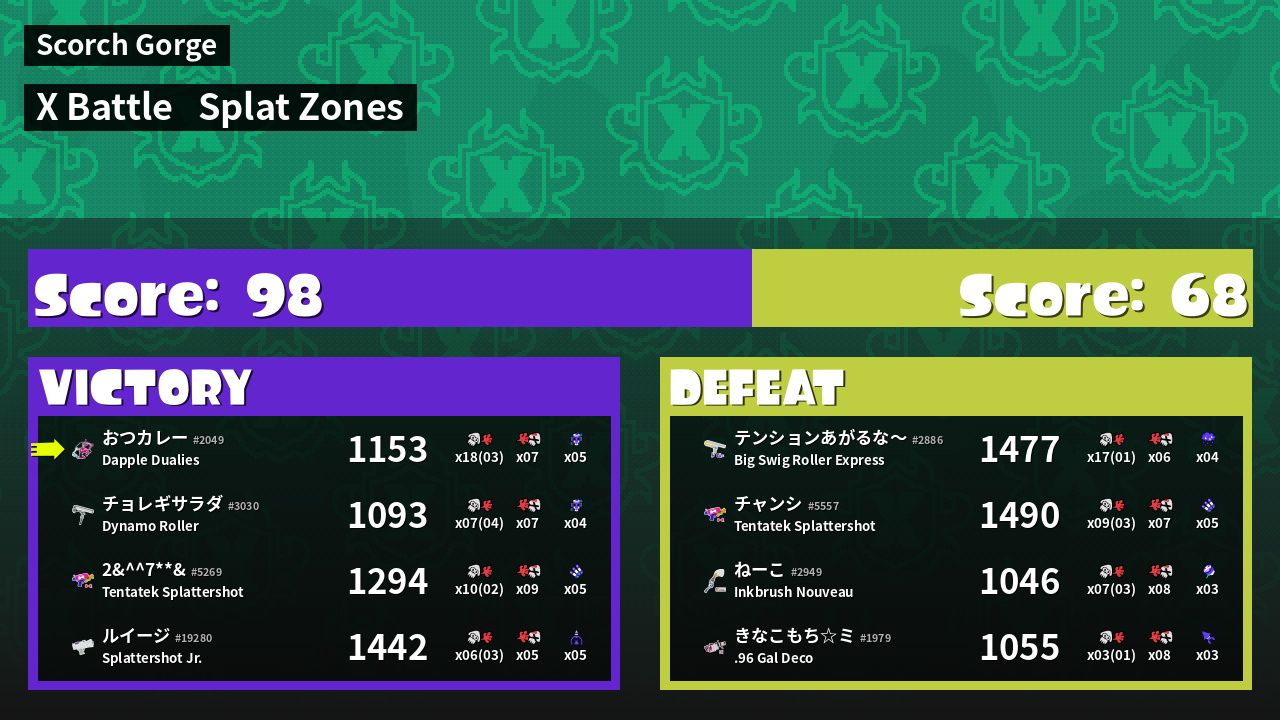 | Mode | Splat Zones - X Battle |