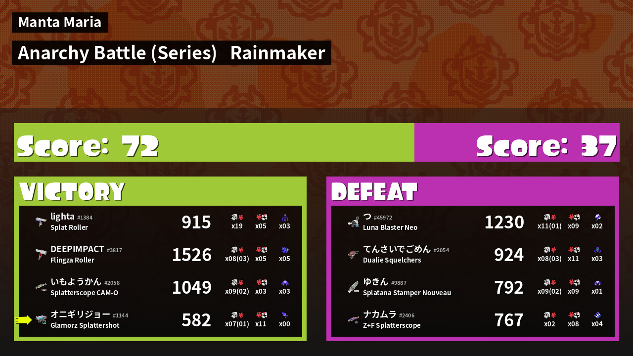 Results of まこりーた's Battle