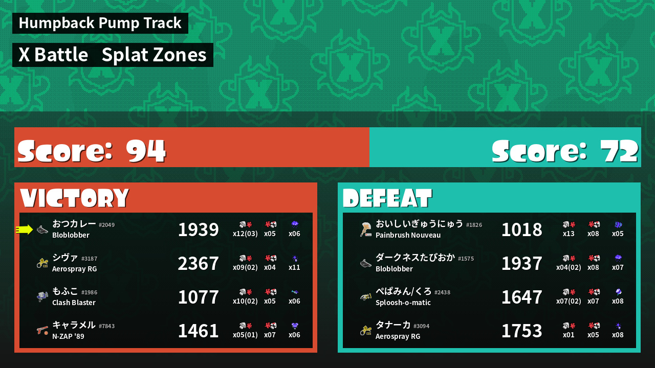 | Mode | Splat Zones - X Battle |