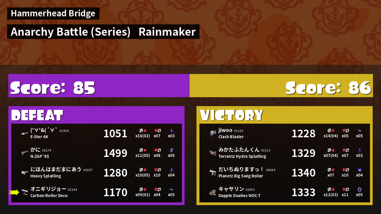| Weapon | Carbon Roller Deco ( Burst Bomb / Trizooka) |