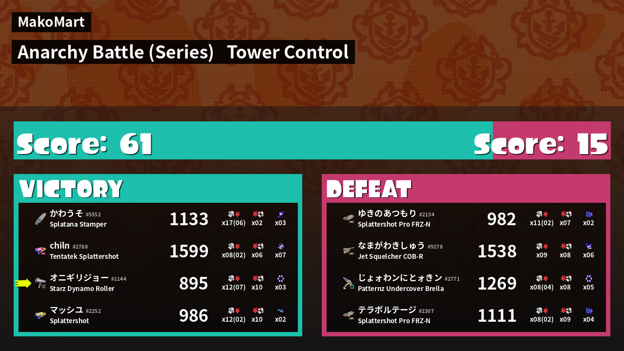 Results of まこりーた's Battle