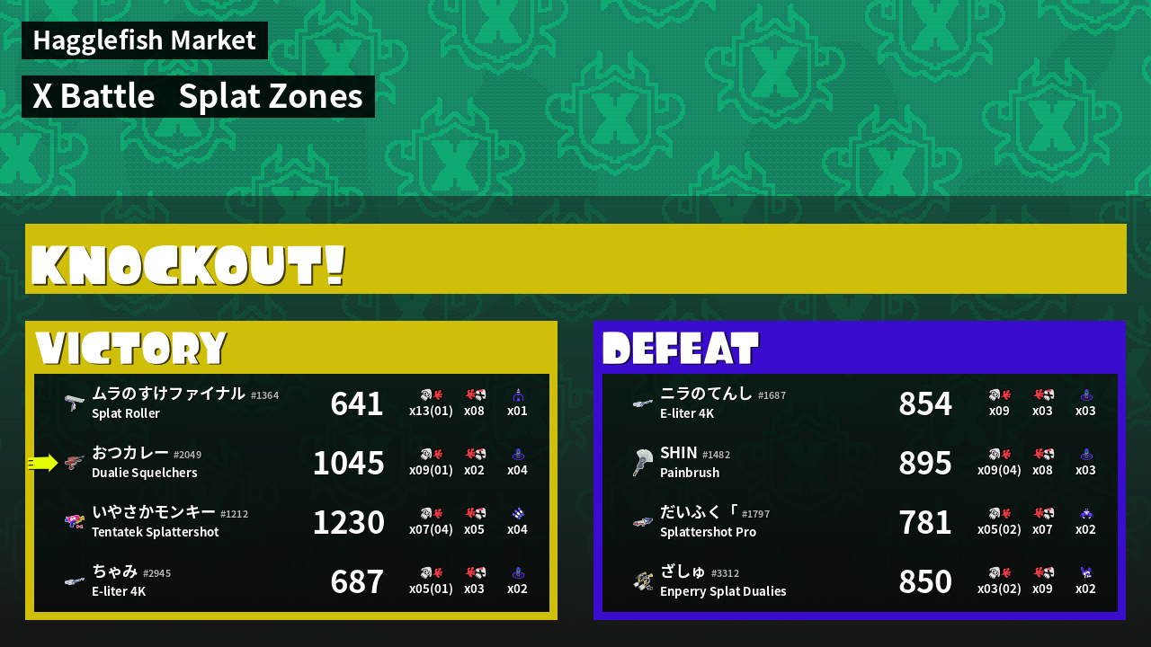 | Mode | Splat Zones - X Battle |