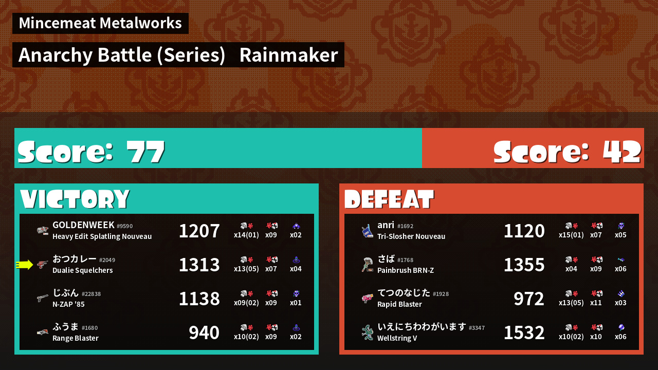 Results of まこりーた's Battle