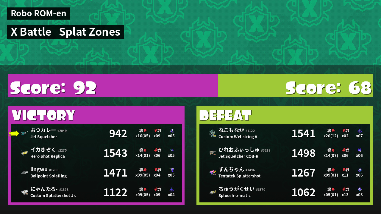 | Medals | #1 Overall Splatter #1 Splat Zone Guard #1 Splat Assister |
