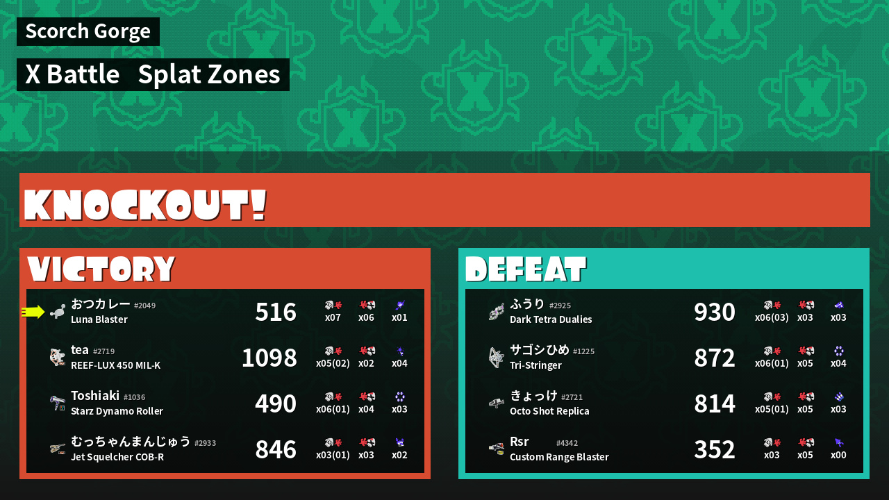 | Mode | Splat Zones - X Battle |