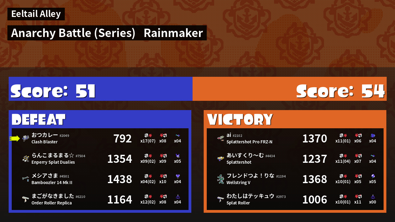 | Mode | Rainmaker - Anarchy Battle (Series) |