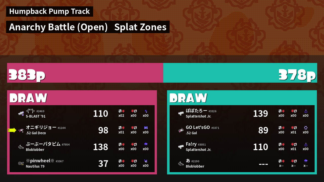 Results of まこりーた's Battle