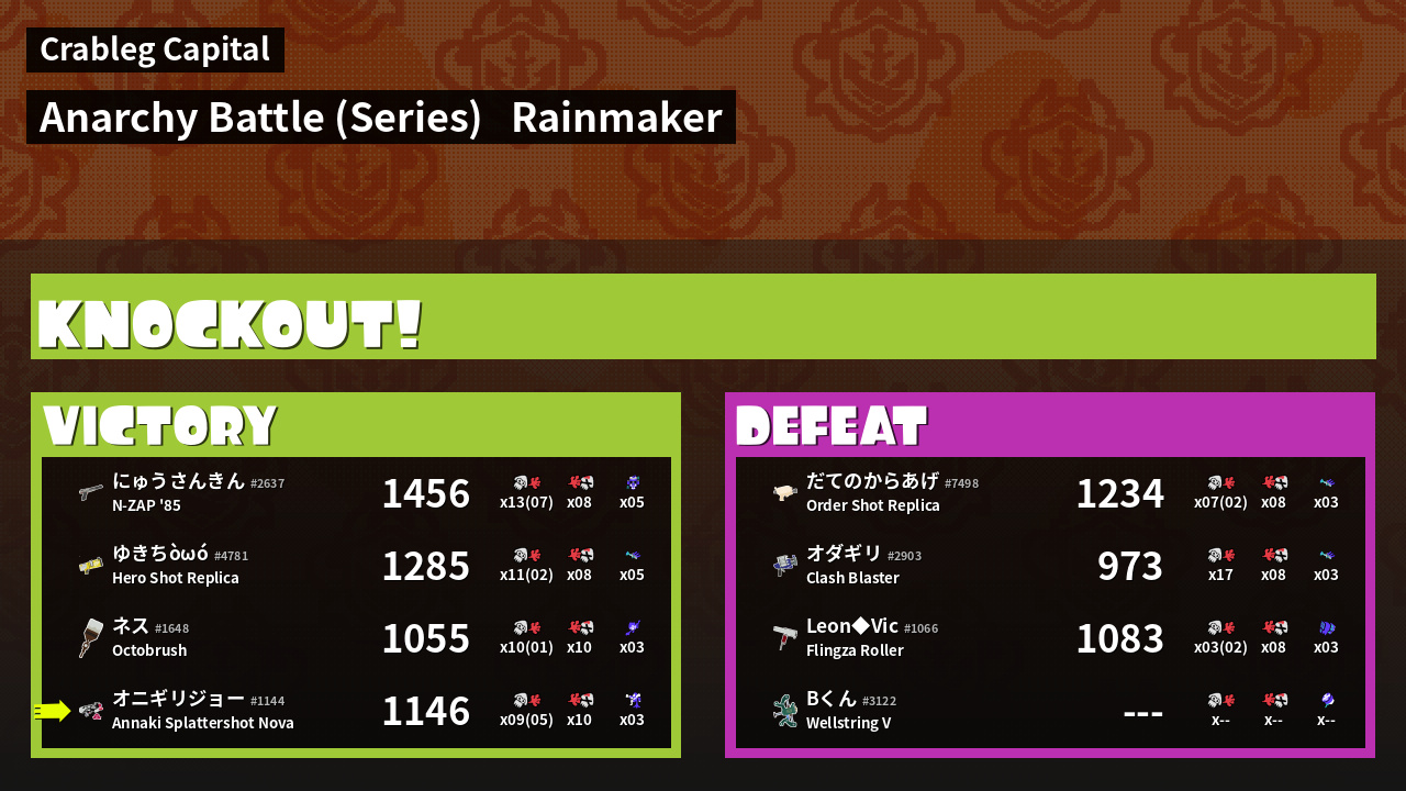 Results of まこりーた's Battle