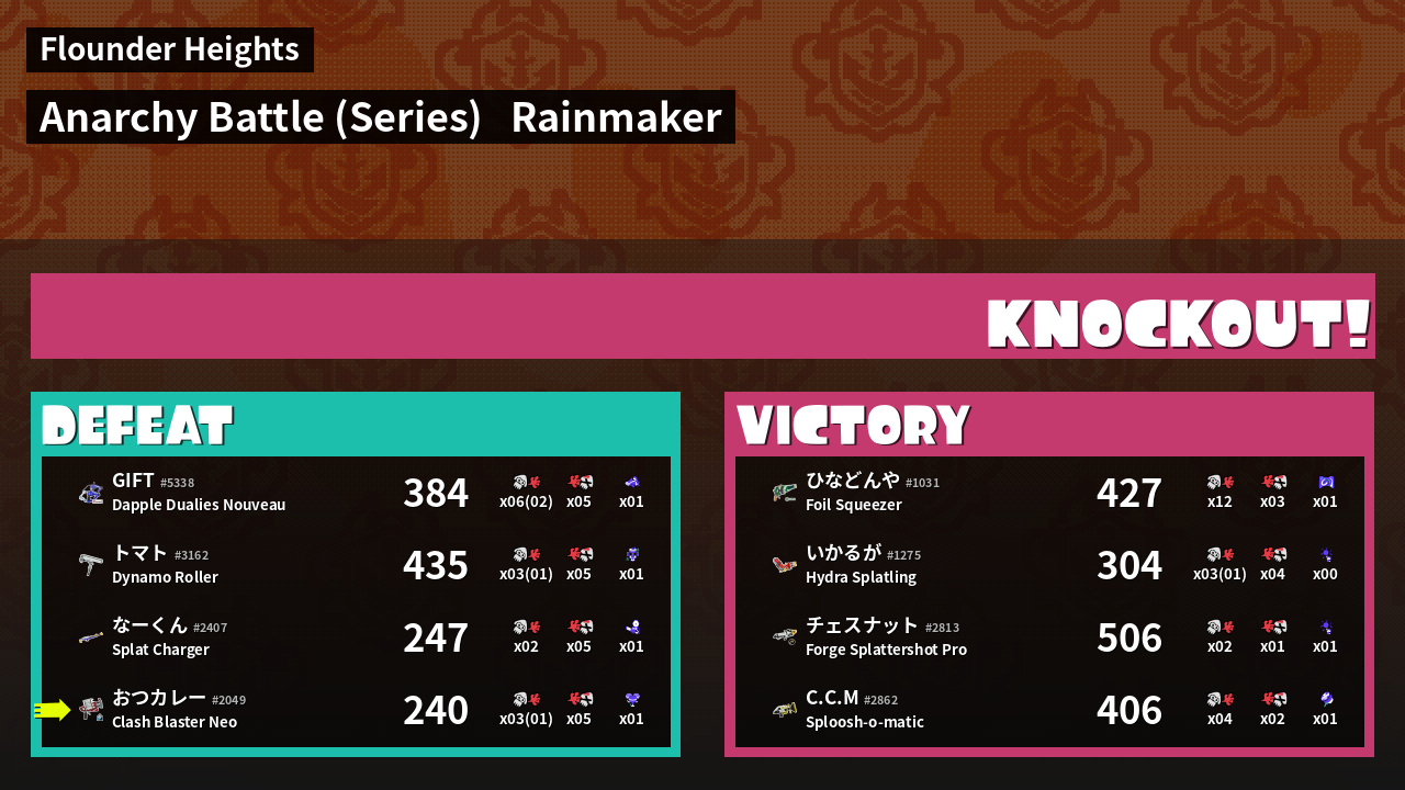 | Medals | #1 Rainmaker Stopper #1 Super Chump User #2 Overall Splatter |