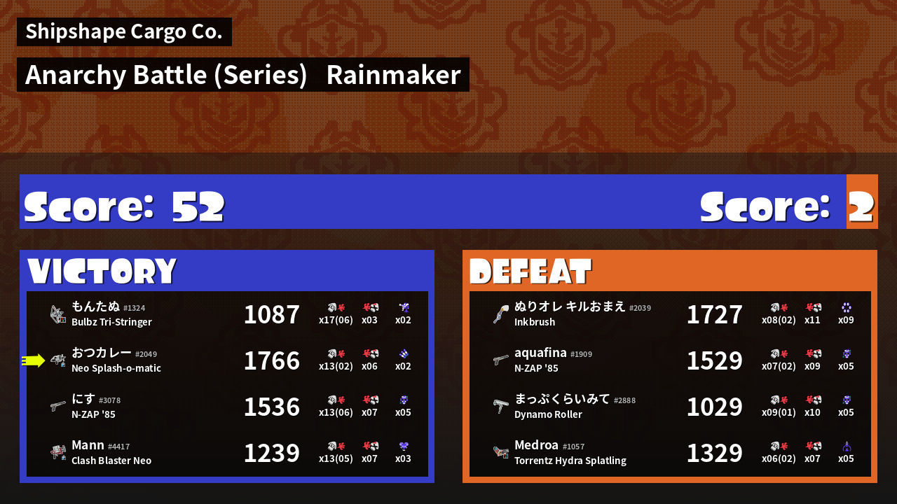| Mode | Rainmaker - Anarchy Battle (Series) |