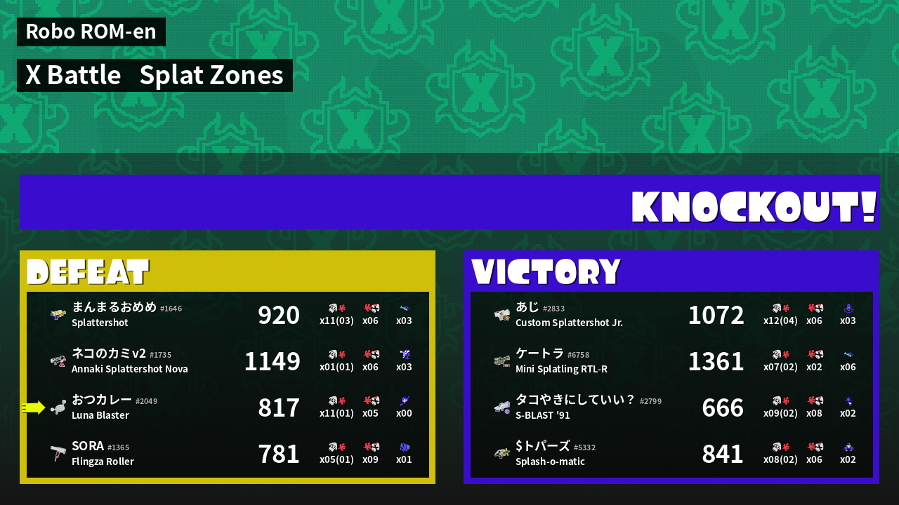 | Mode | Splat Zones - X Battle |