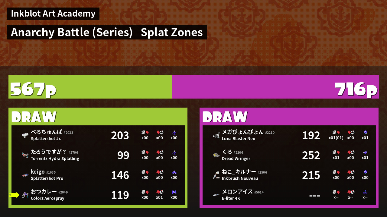 Name | Weapon | Inked | ![]() |