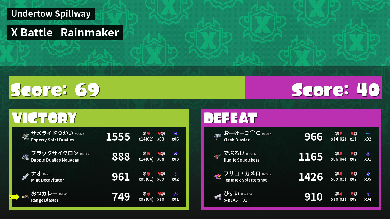 | Weapon | Range Blaster ( Suction Bomb / Wave Breaker) |