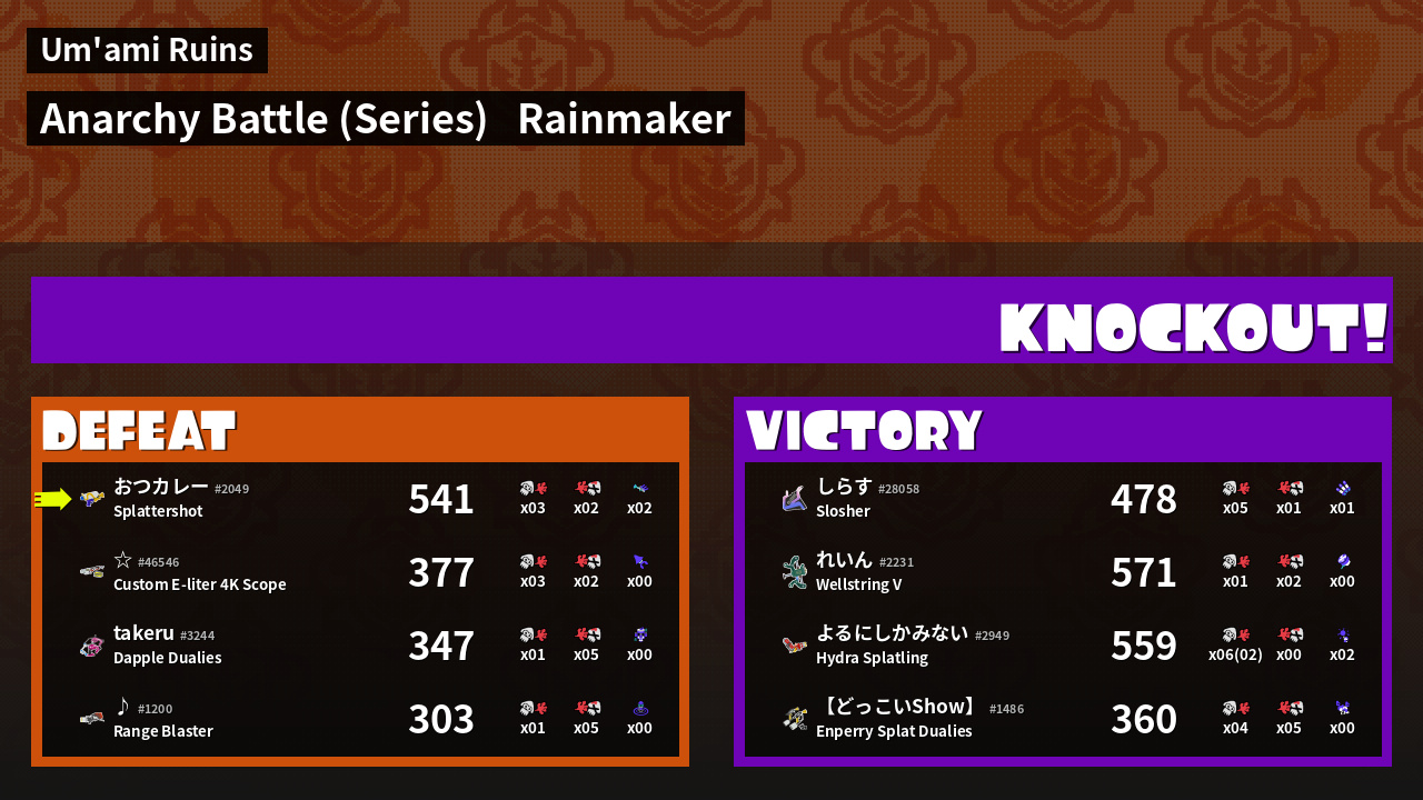 | Mode | Rainmaker - Anarchy Battle (Series) |
