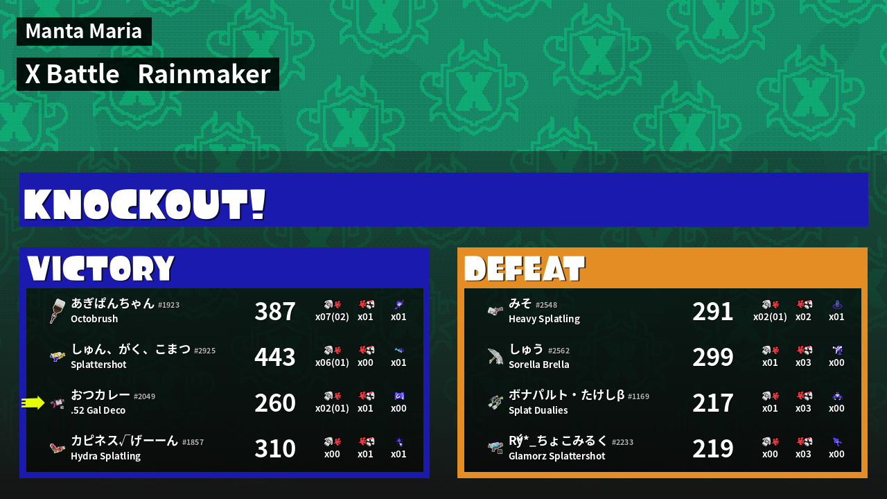| Weapon | .52 Gal Deco ( Curling Bomb / Splattercolor Screen) |
