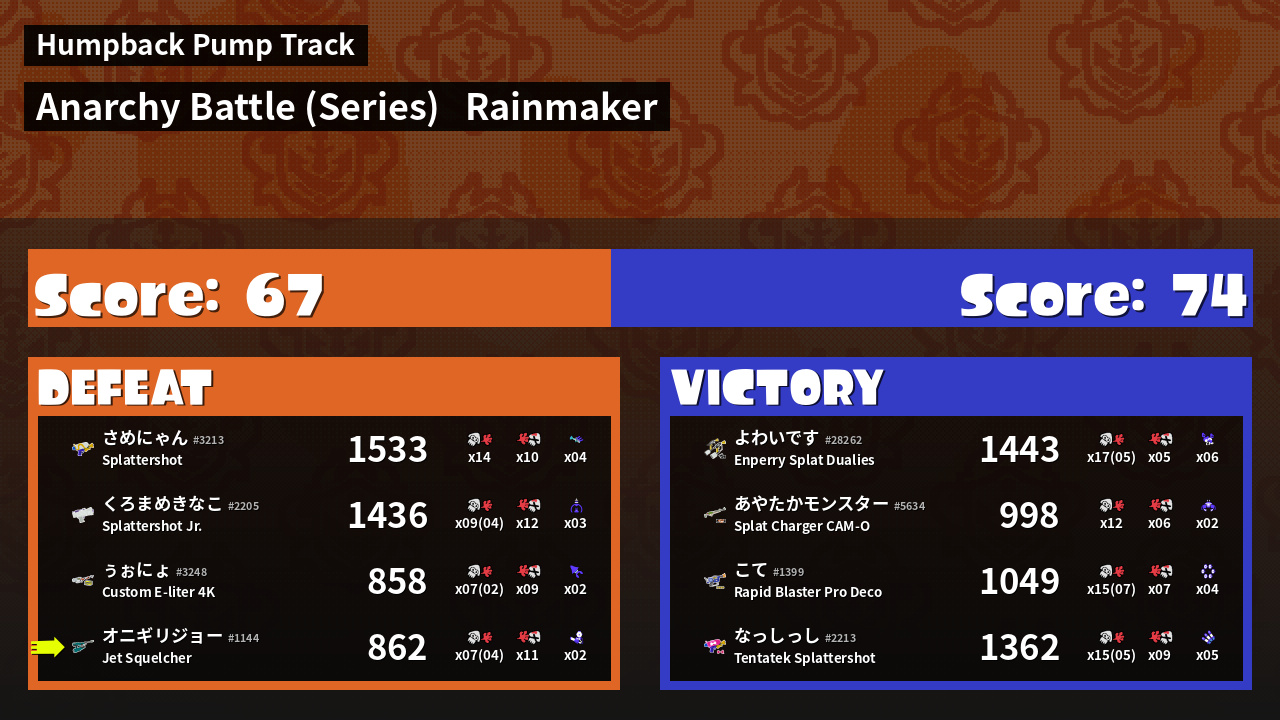 Results of まこりーた's Battle