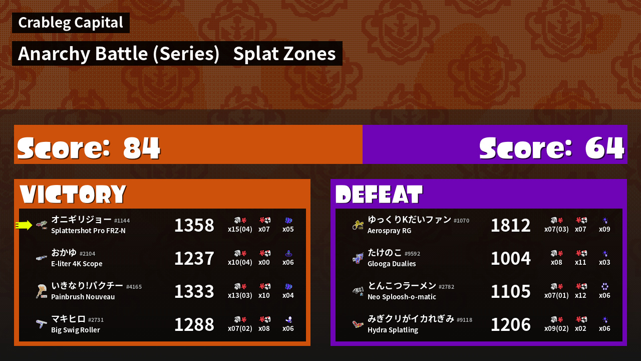 | Mode | Splat Zones - Anarchy Battle (Series) |