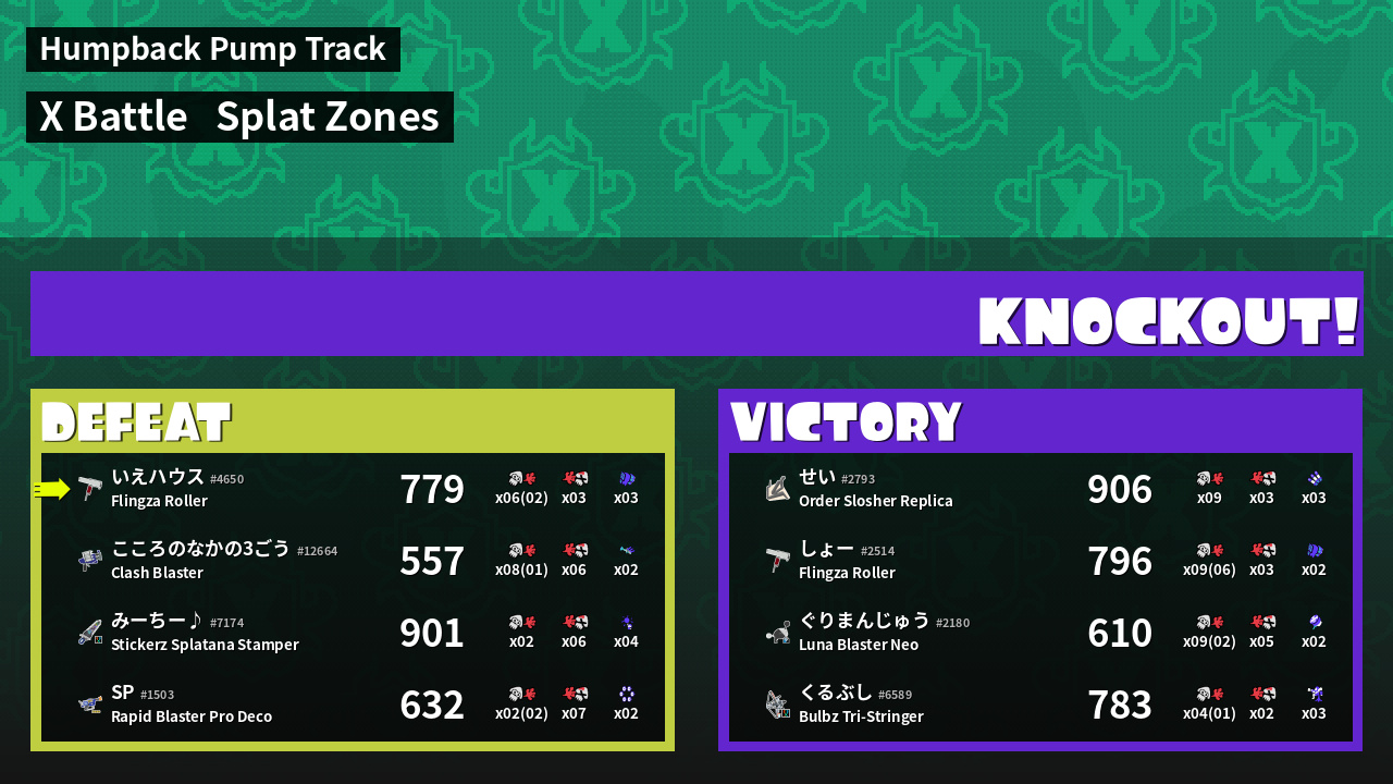 | Mode | Splat Zones - X Battle |