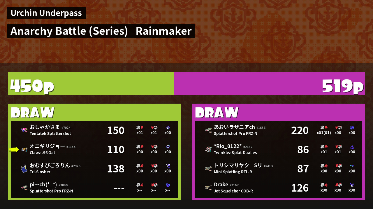 Results of まこりーた's Battle