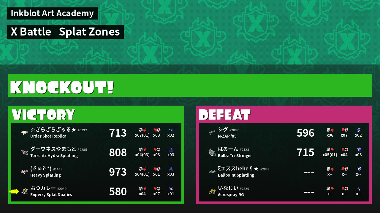 | Weapon | Enperry Splat Dualies ( Curling Bomb / Triple Splashdown) |