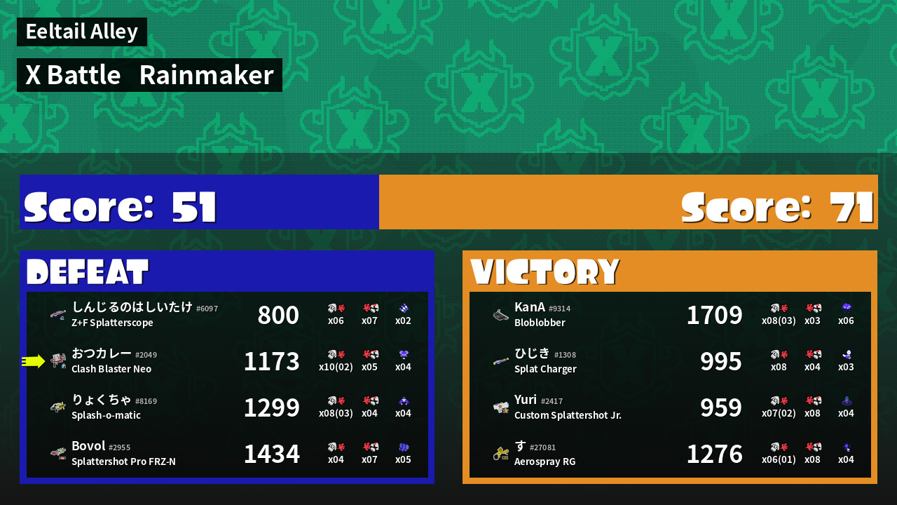 | Medals | #1 Overall Splatter #1 Enemy Splatter #1 Ink Consumer |