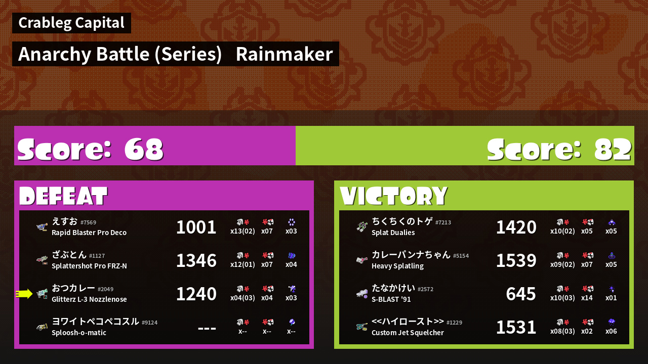 | Mode | Rainmaker - Anarchy Battle (Series) |