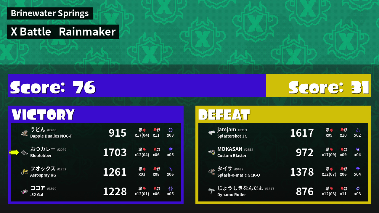 | Medals | #1 Turf Inker #1 Super Jump Spot #1 Splat Assister |