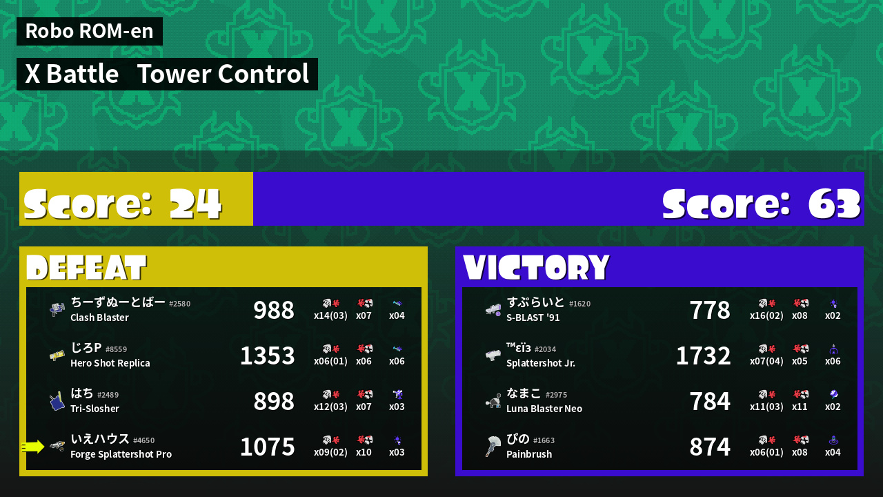 | Mode | Tower Control - X Battle |
