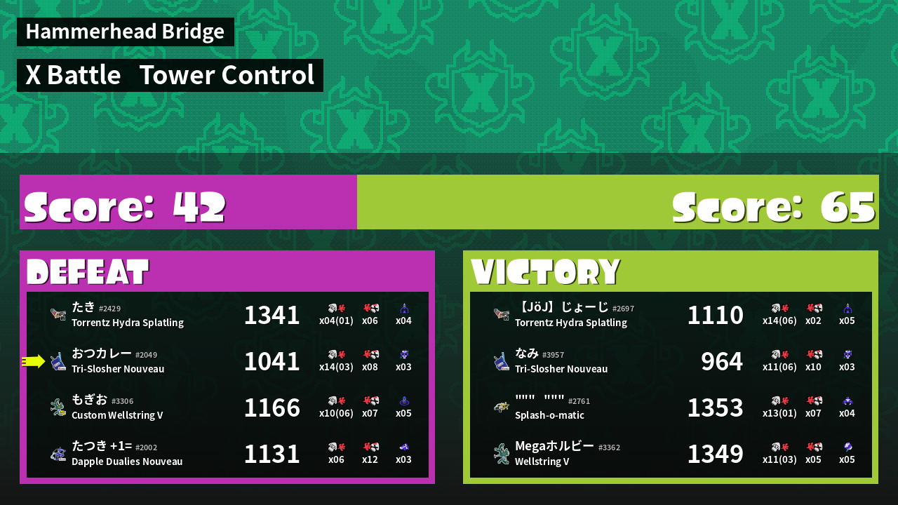 | 大地の守護神  たき #2429 |  Torrentz Hydra Splatling                    | L | 1,341 | 3 + 1 | 6 | 0.50 |  4 | |