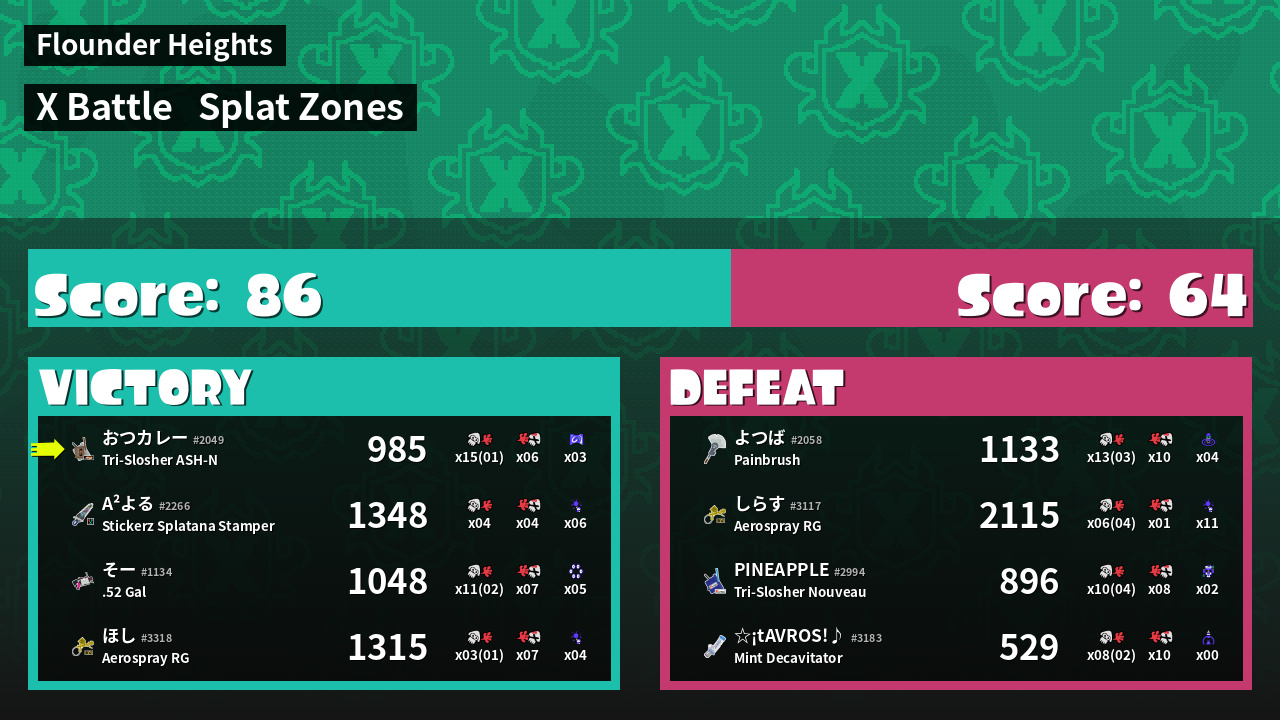 | Medals | #1 Overall Splatter #1 Splat Zone Guard #1 Enemy Splatter |